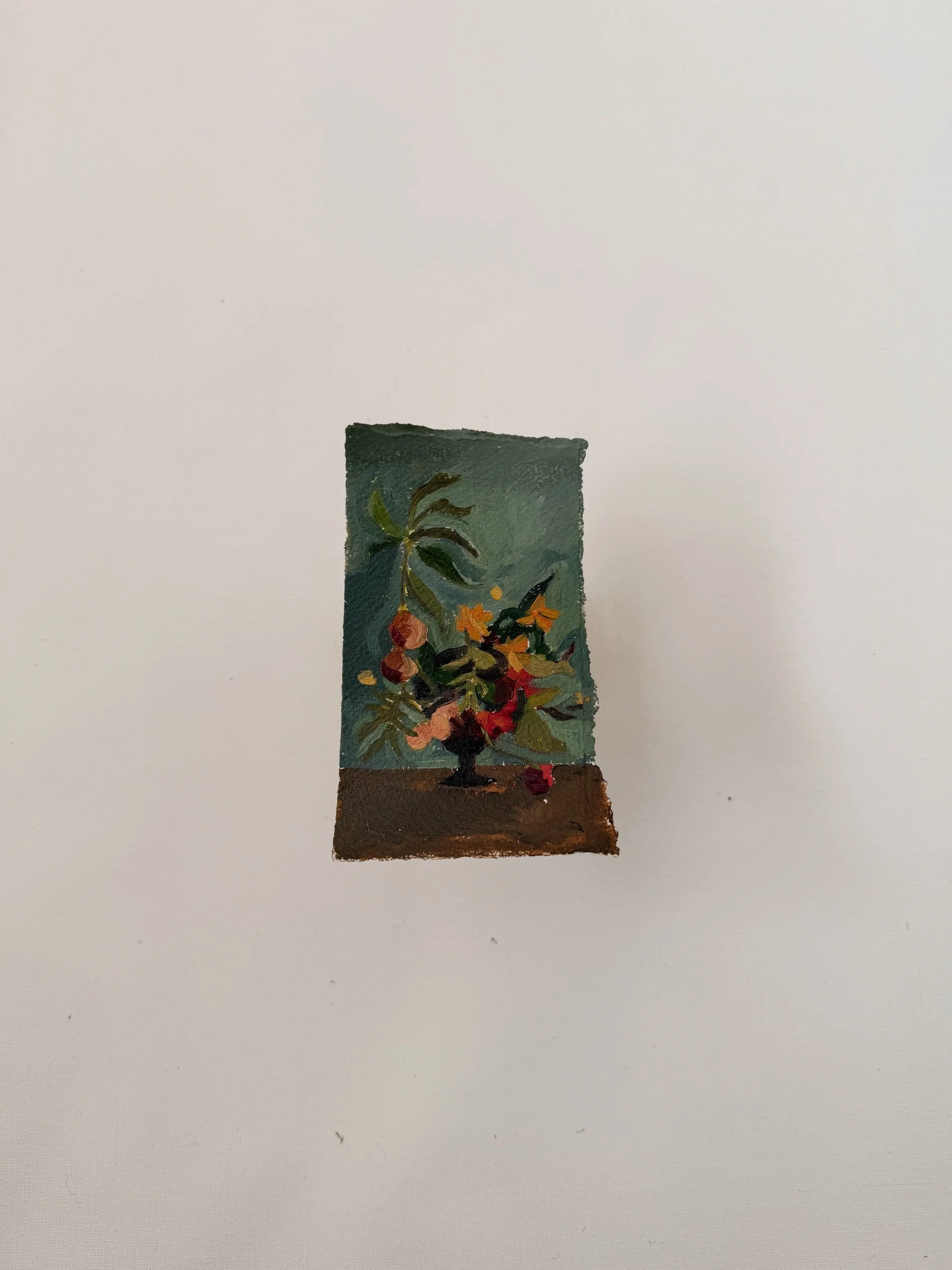 Works on Paper › Floral Mini IV Image 1 of 3 Image 2 of 3 Image 3 of 3 Floral Mini IV $105.00 Oil on roughly 3x5 paperSizes are estimates. Each painting is hand torn, so sides are always perfectly square. Add To Cart Added! Oil on roughly 3x5 paperSizes are estimates. Each painting is hand torn, so sides are always perfectly square.